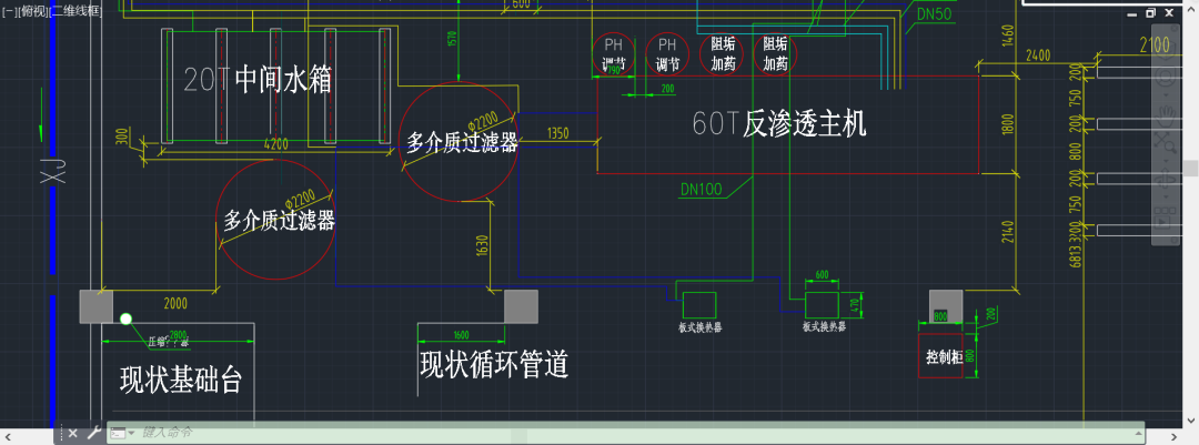 包括以下設備:換熱系統(tǒng)、原水電動閥、多介質(zhì)過濾器、精密過濾器、PH調(diào)節(jié)系統(tǒng)、阻垢系統(tǒng)、反滲透主機、清洗水泵、清洗過濾器配套控制系統(tǒng)。整套系統(tǒng)全自動運行。