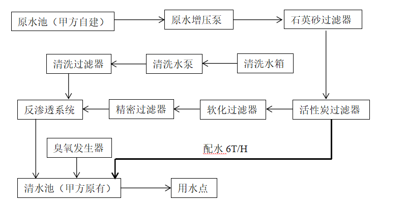 本工藝方案是根據(jù)用戶要求,本著工藝設(shè)備先進、可靠、最大限度地提高系統(tǒng)的性能價格比的原則進行設(shè)計。系統(tǒng)采用“原水系統(tǒng)+預處理系統(tǒng)+反滲透膜系統(tǒng)+配水系統(tǒng)+消毒系統(tǒng)為一體的全自動成套設(shè)備”水處理工藝,該系統(tǒng)能夠保證需方各類品質(zhì)用水需要,方案設(shè)計合理、運行穩(wěn)定、并已在多項類似工程中得到應用及檢驗。